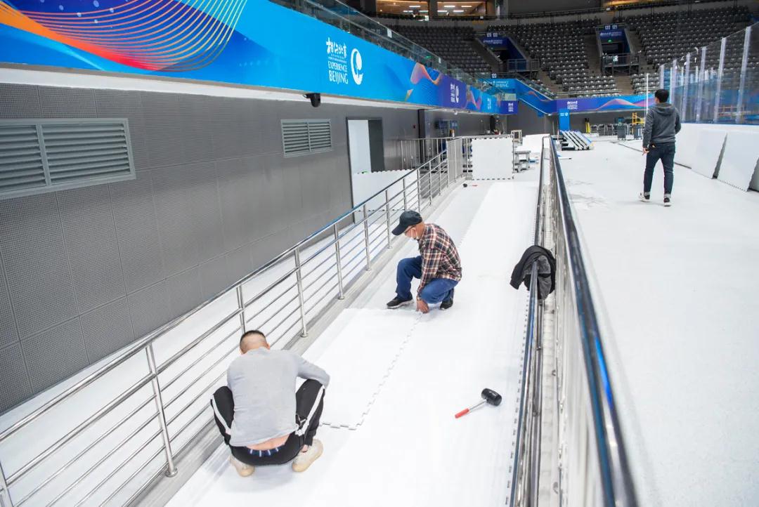 在残奥冰球赛场上运动员最看重的是什么?是无障碍设施。在残奥赛场的打造上,为了让残奥运动员从落客区可以便捷地直达更衣室,国家体育馆在运动员更衣室、训练馆、赛场等区域都会铺设400余平方米、厚度为1.5厘米的仿真冰板,入场门也从原来的80厘米扩宽到1米,方便选手滑行通过。