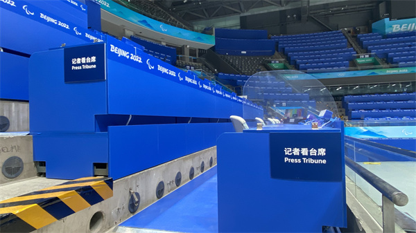 冬残奥会赛时,运动员将走运动员通道来到混合采访区,接受全球记者的采访,目前这里的挡板已经全部更换,挡板高度由冬奥会时的1.2米高降到了60公分,运动员在外面保持两米的防疫距离,采访运动员就更方便了。此外,国家体育馆还为运动员打造了定制化的热身区,由于冬残奥会运动员主要依靠上肢发力的特点,脚踏自行车等热身器械都换成了手摇式器械。