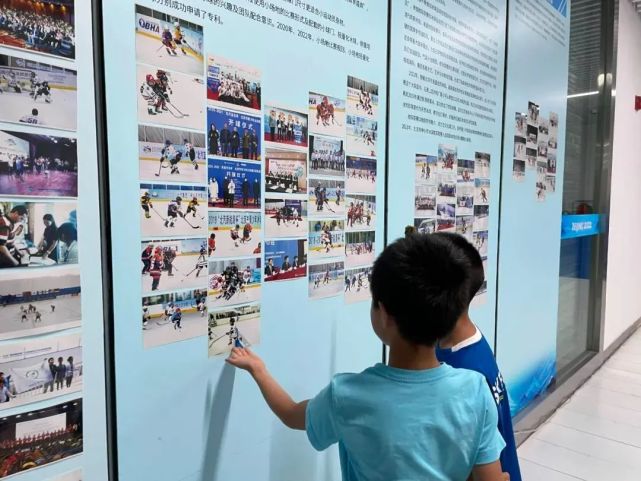 冬奥会后,国家体育馆冰球馆仍保留了部分冬奥时期的形象景观,让来到场馆的参赛运动员一进入场地就能感受到场馆的冬奥文化气息。进入冰场,围绕看台层的冬奥景观图案以及萌萌的冰墩墩、雪容融等形象一下子就吸引了小运动员们的目光。冰场外侧的北京冰球照片墙向小运动员们讲述着北京冰球赛事的历史与文化;冬奥展示区的冬奥冰球颁奖合影台和参与冬奥的工作人员的亲身经历则向每一位来宾诉说着属于这座场馆的冬奥故事。