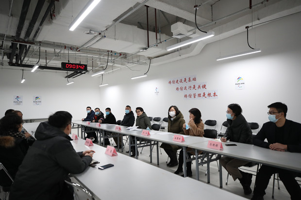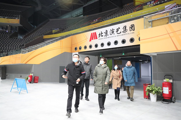 2月8日,北京演艺集团党委书记、董事长赵佳琛,集团党委副书记、总经理王珏,集团副总经理王茂强,集团总经理助理金黎明,到国家体育馆看望冬奥组委国家体育馆运行团队,并与北京冬奥组委场馆运行团队主任层进行会谈。集团领导首先介绍了集团的基本情况,对冬奥组委场馆运行团队入驻国家体育馆表示欢迎,并将举集团之力做好测试活动、测试赛以及冬奥会运行保障工作。场馆团队对驻馆办公后集团给予的各方面支持表示感谢,并介绍了团队工作情况。会后,集团领导在场馆运行团队的陪同下参观了团队办公区、训练馆及主馆,实际体验首次制冰的冰面质量并合影留念。集团办公室相关人员及国家体育馆冬奥融合小组相关负责人员全程陪同。