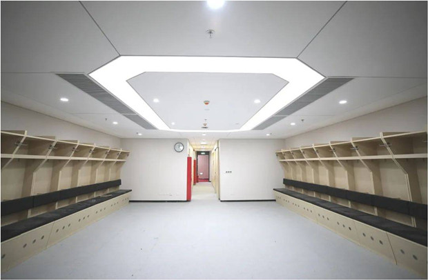 场馆内添置了14个球队更衣室,各配备独立的磨刀室、储存室、按摩室、教练室,力求给运动员们创造最舒适的比赛条件。